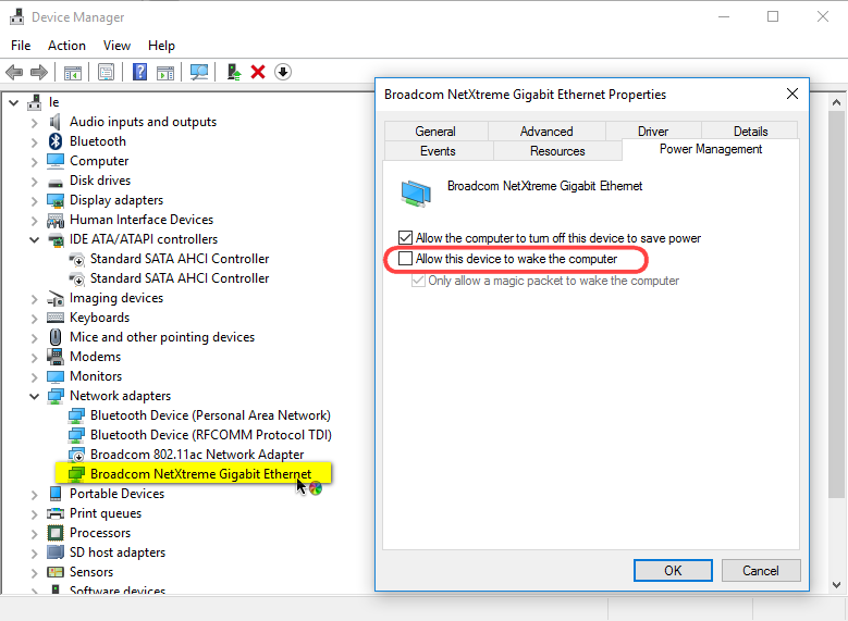 Если уже известно, какое устройство выводит компьютер из спячки, то можно просто зайти в диспетчер устройств и отключить ему эту возможность: